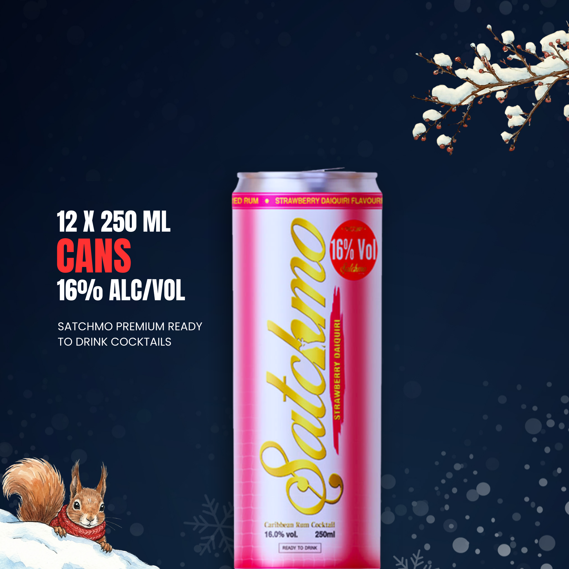 Satchmo Strawberry Daiquiri Rum Cocktail, 16% ABV, 12 x 250ml Cans